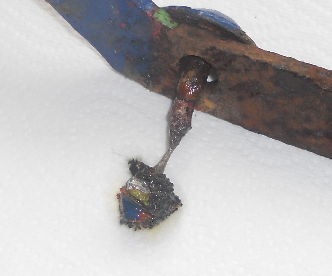 By the morning, so little metal remains that the bolt can be snapped in half using my hands. It's a success. I can now replace the bolt with a new one, while keeping the rest of the latch: